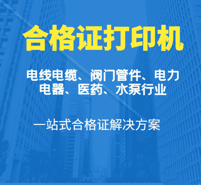 權(quán)昌特種打印專業(yè)合格證打印機(jī)廣泛應(yīng)用:在生產(chǎn)制造、化工、醫(yī)藥、電子電器、機(jī)械電子、電線電纜、閥門泵類等制造業(yè)企業(yè)。
